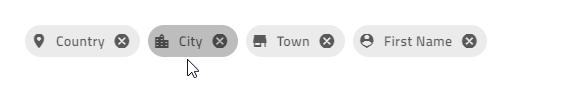 is a visual element that displays information in an oval container. The component has various properties - it can be templated, deleted, and selected. Multiple chips can be reordered and visually connected to each other, using the chip area as a container.