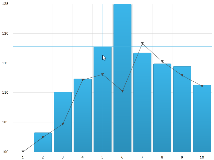 The following image is a preview of the UltraDataChart control rendered with the CrosshairLayer added.