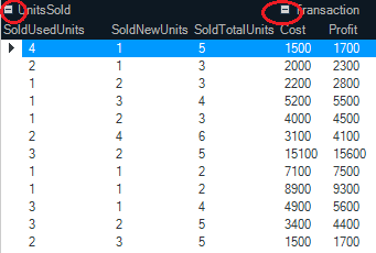 The following screenshot demonstrates the UltraGrid control with the UnitsSold group collapsed.