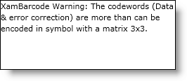 If the user has explicitly set some of the above-mentioned properties, the defined matrix might not be suitable for the data – this will cause the UltraPdf417Barcode control to display a corresponding error message: