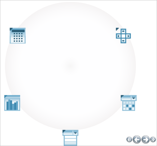 Place this code inside the XamCarouselPanel opening tag in the Adding xamCarouselPanel to Your Page topic. You will see xamCarouselPanel displaying buttons without reflections similar to the image below.