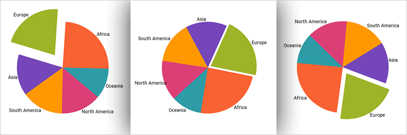 Customize pie slice position and appearance for all slices, or change individual slices when selected by a user.