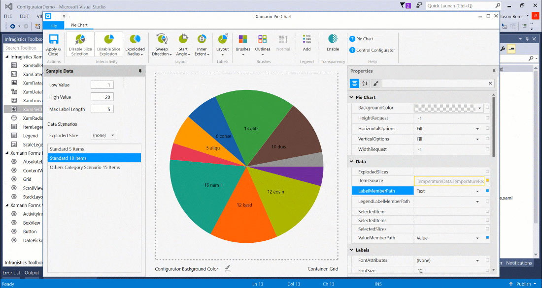 Use the new Ultimate UI for Xamarin Pie Chart Configurator to quickly configure the control and bind data directly from XAML—no code required!